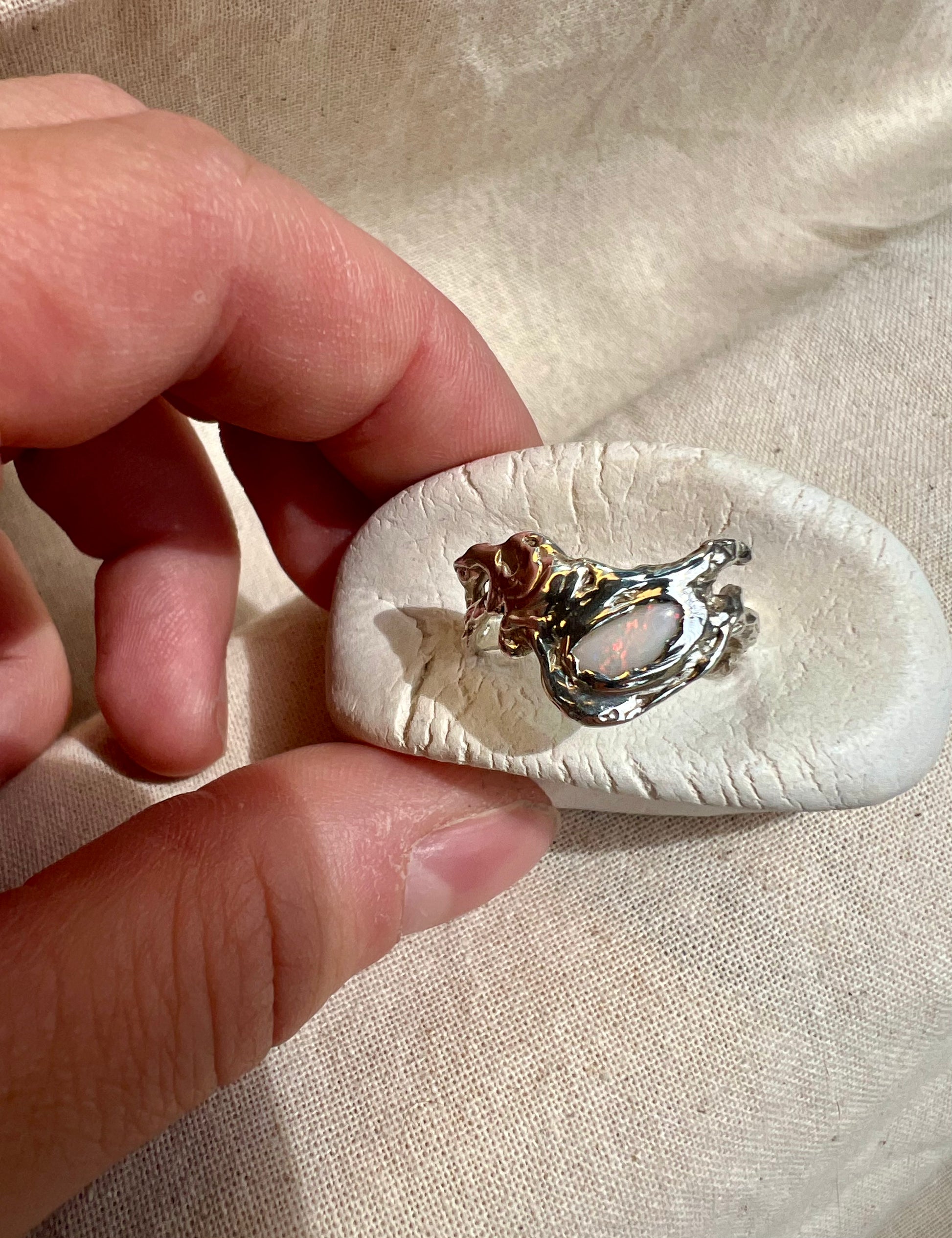 Handmade Opal Ring – Organic Sterling Silver Artisan Design | Raw Natural Australian Opal Jewellery