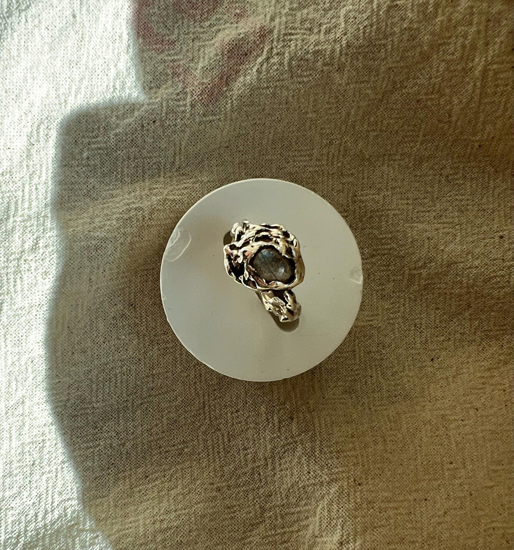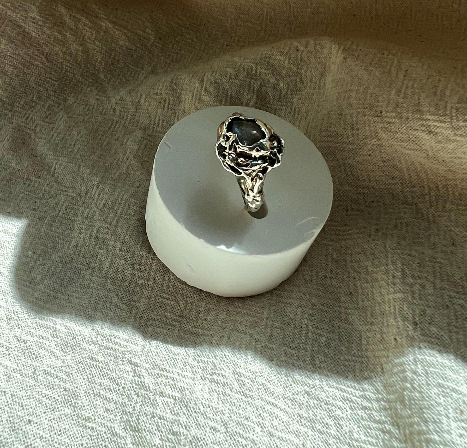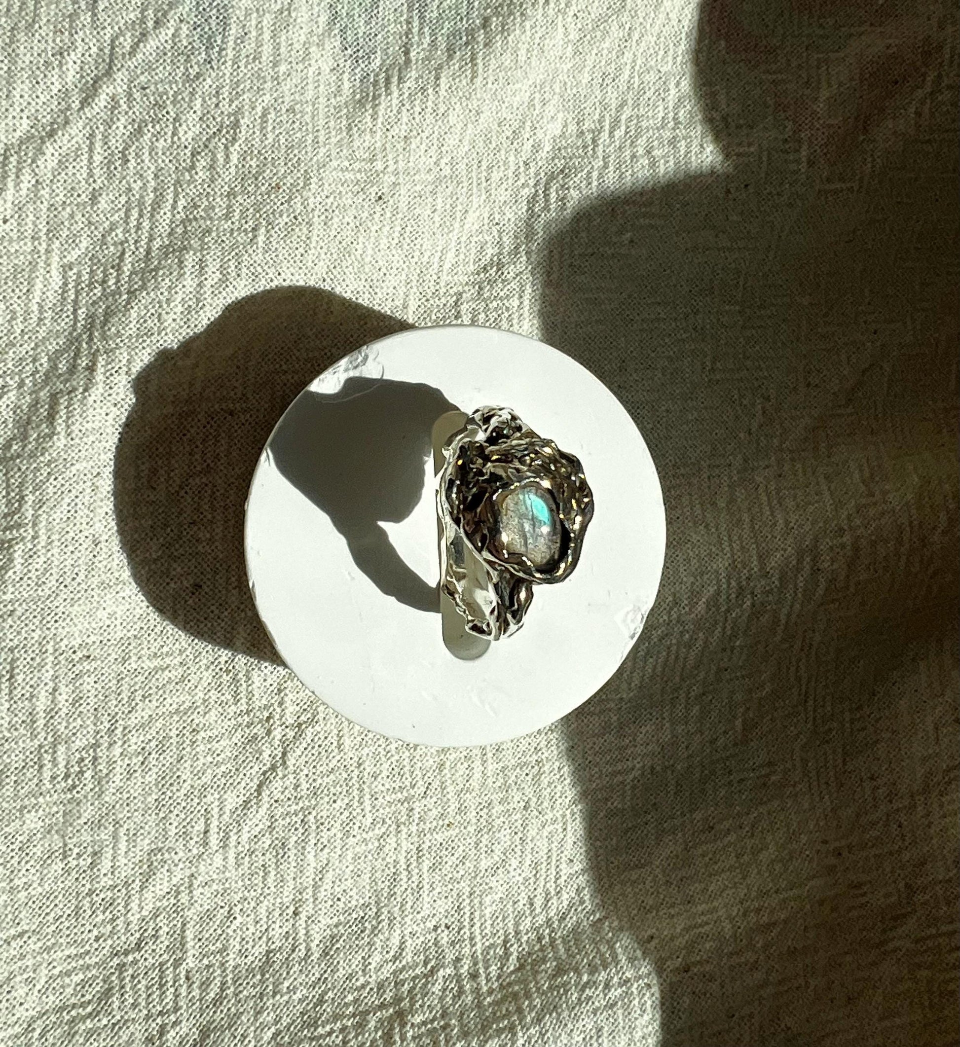 Labradorite Statement Ring – Handmade Sterling Silver Ocean-Inspired Ring | Organic Gemstone Jewellery