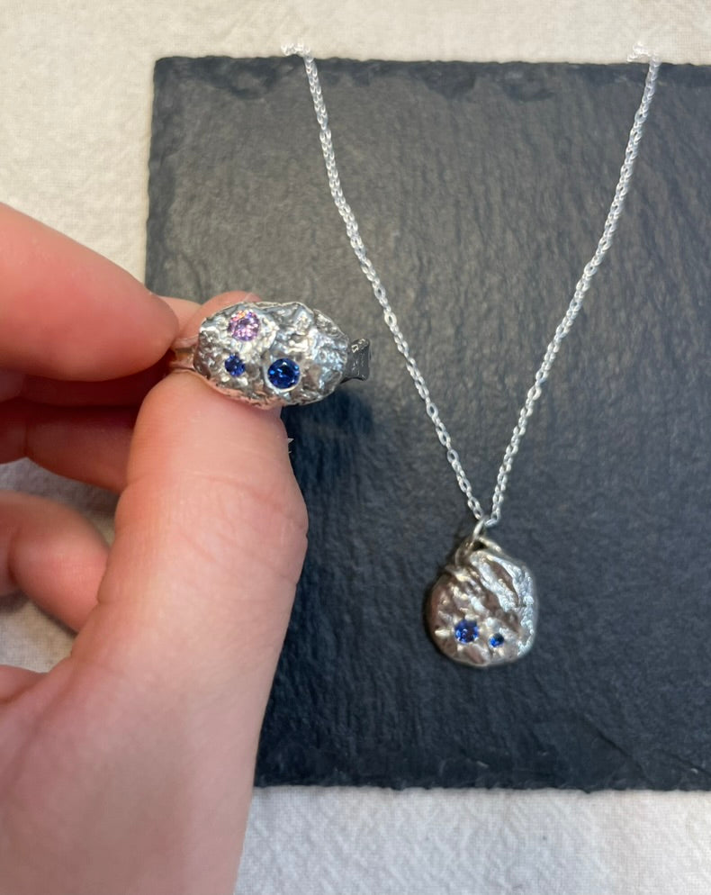 Organic Ring – Textured from recycled silver and cubic zirconia