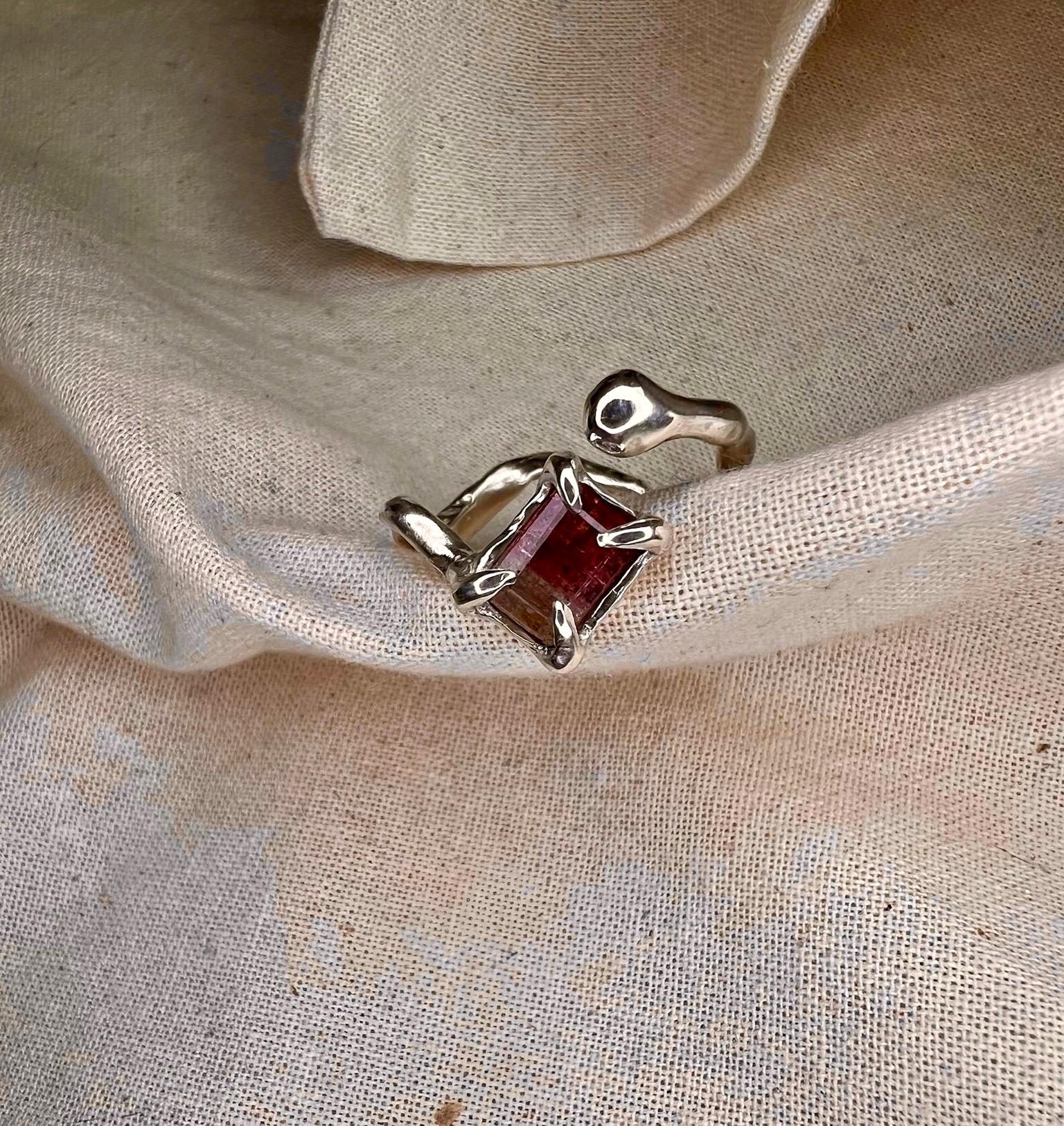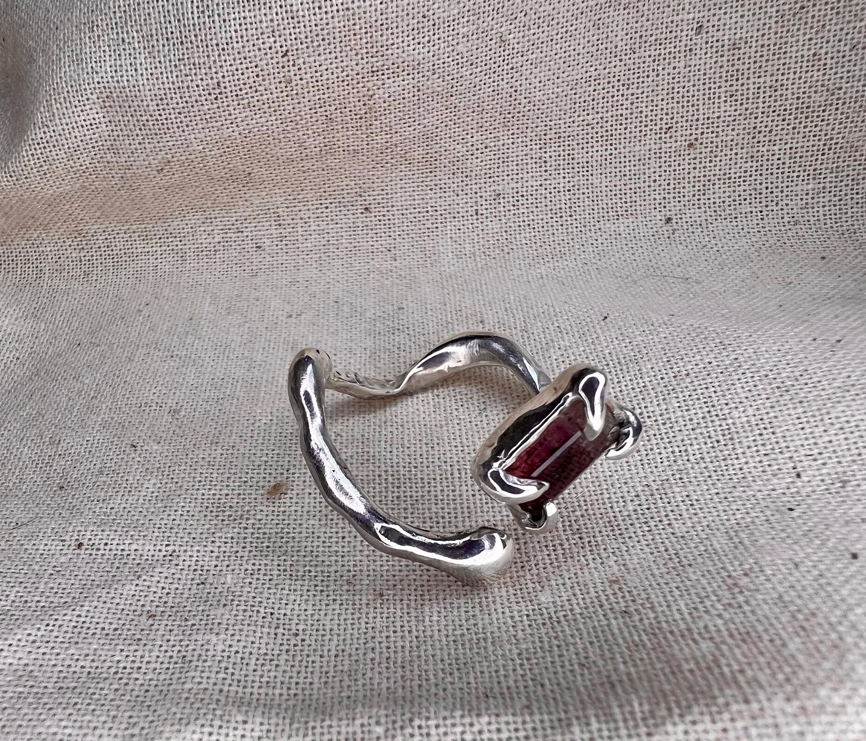 Pink Bicolour Tourmaline Ring – Organic Sterling Silver Setting | Handmade Statement Jewellery UK